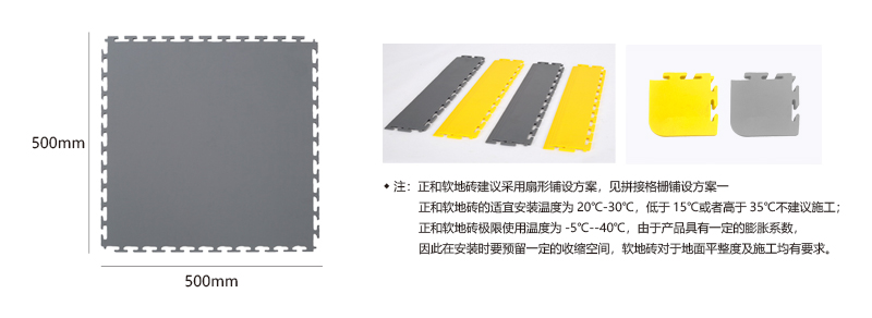 軟質(zhì)絕緣地板能將每個獨立的地板快速拼裝成整體地面,專利型鎖扣結(jié)構(gòu)連接能力更強,可承受叉車的來回碾壓。施工過程中無需膠黏劑等材質(zhì),具有施工簡單快速、色彩絢麗、美觀大方、可移動性強、可重復(fù)使用等特點。