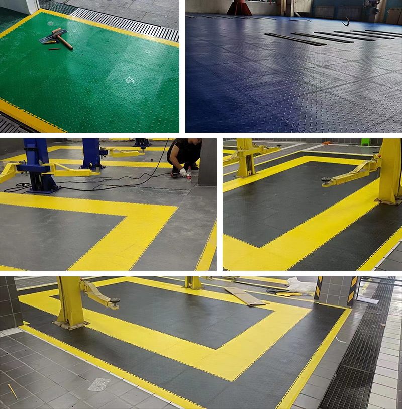 軟質(zhì)絕緣地板能將每個獨立的地板快速拼裝成整體地面,專利型鎖扣結(jié)構(gòu)連接能力更強,可承受叉車的來回碾壓。施工過程中無需膠黏劑等