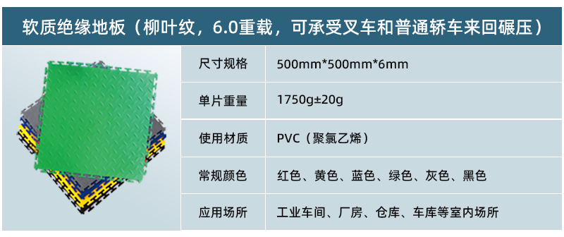 5、高承載,更防滑: 軟質(zhì)絕緣地板為實心結(jié)構(gòu),只要地面承重沒有問題,其承載能力能夠達到每平米10噸以上。地板表面在生產(chǎn)過程中帶有